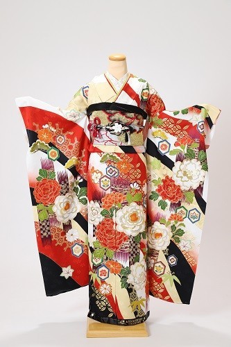 新作パンフ【振袖ヒロイン】から人気の黒に輝く金彩が目を引くお振袖です。