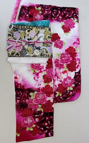 袋帯・・・甘くなりすぎないように黒地に艶やかなバラ柄をアクセントに